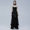 Cute black over-the-knee skirt has a lace-up front with attached suspenders that can be adjusted and worn up or down.