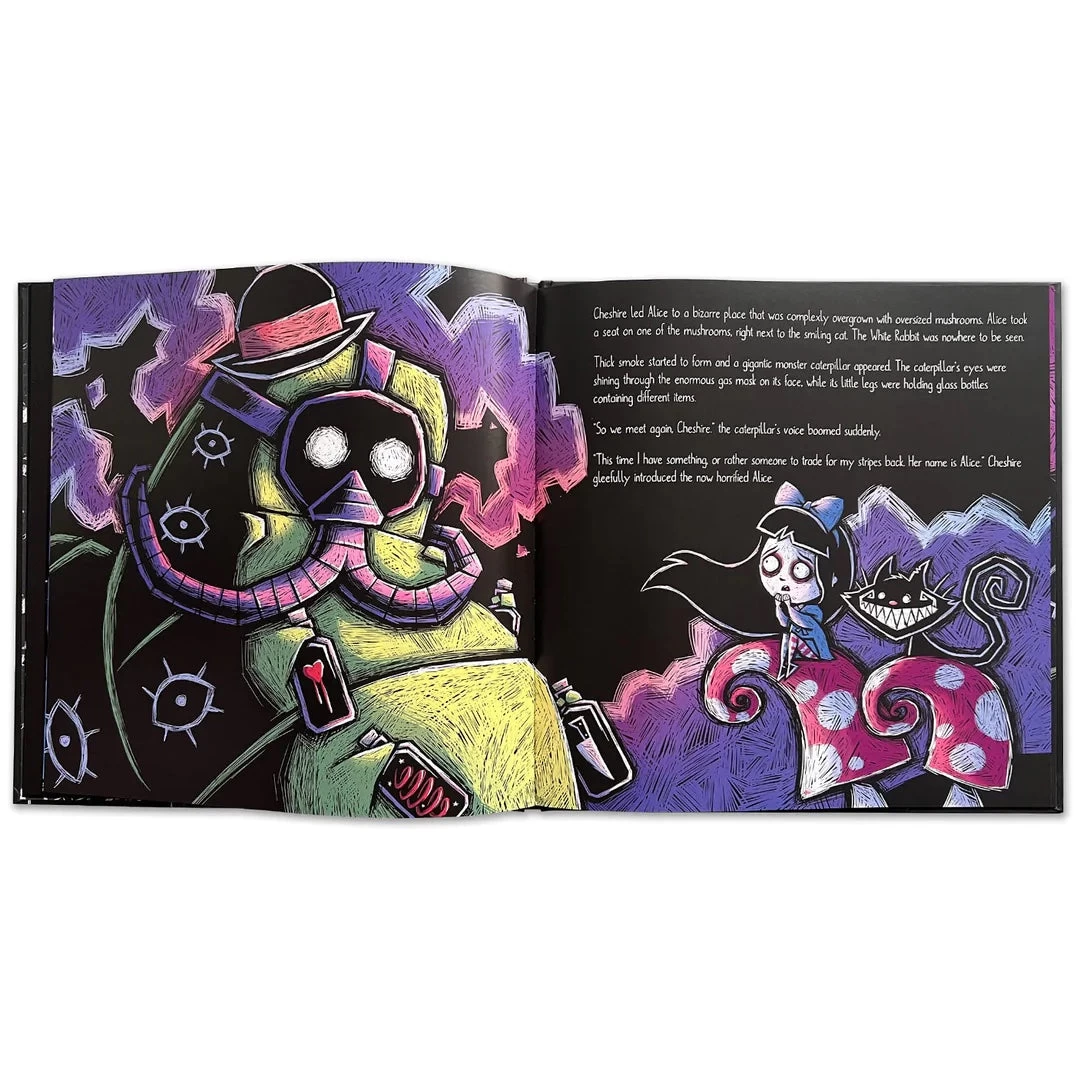 Follow Alice as she cleverly escapes traps and makes her way through this disturbing world. Will her adventure take her home? With every turn of the page, we will bring you along to experience her adventures through our beautiful illustrations.