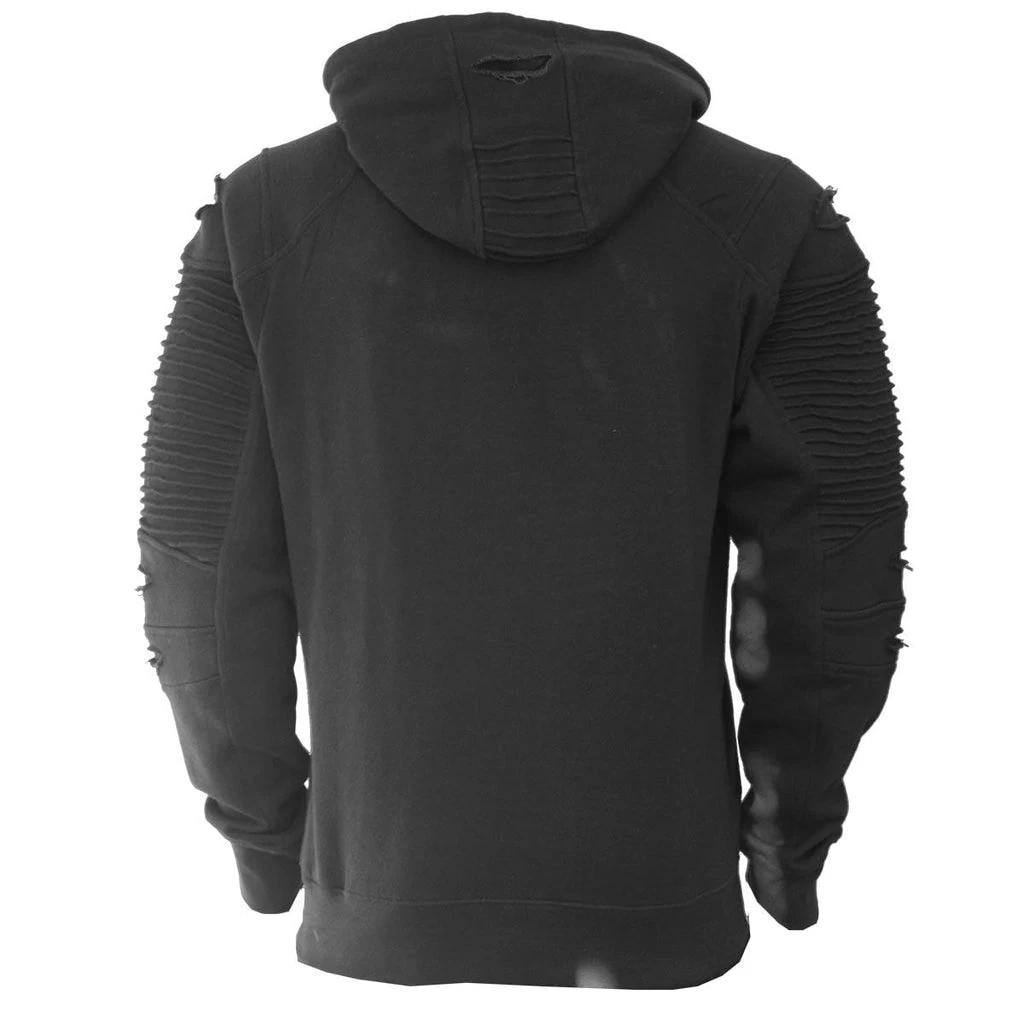 Premuim Biker Fashion Mens Hoodie is made of Top Quality 100% Cotton, Fleece using layered piping with tears.