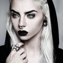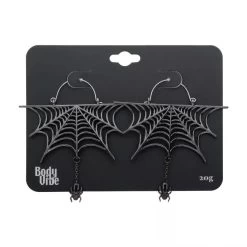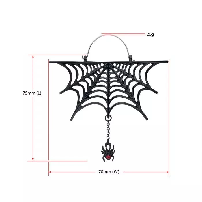 Black Plated Spiderweb with Dangle Spider Plug Hoops. The 20g post is made from Stainless Steel and can be worn as a normal ear piercing. Sold as pair.