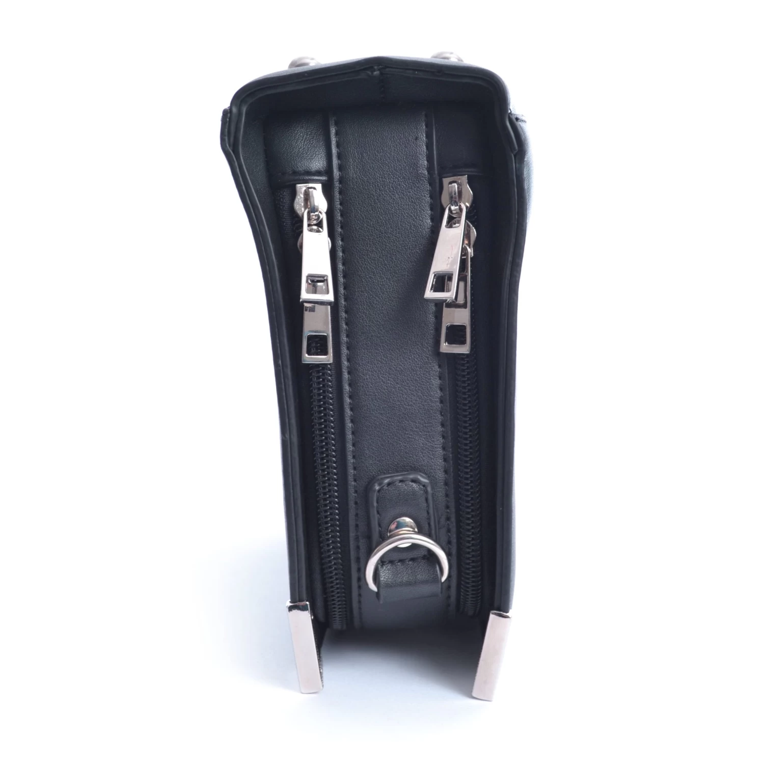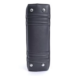 Black book handbag with “Handbook for the Recently Deceased” print, zipped pocket, fixed handles and an optional shoulder strap.
