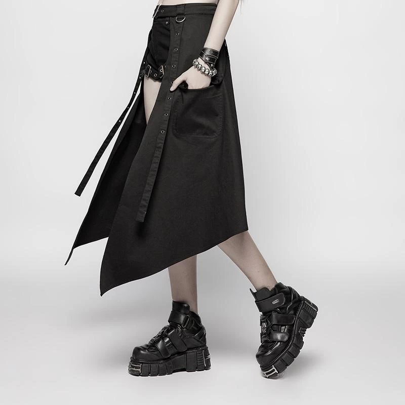 Ladies Daily Wear Adjustable Half Skirt Overlay Accessory is made of black non-woven stretch fabric. Belt is fully adjustable. The half skirt can be paired with a dress, shorts or pants or leggings to give a skirt overlay look. Pockets on both sides. Wide adjustable belt for easy re-sizing. High/low hemline.