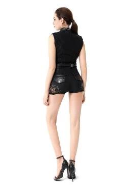 Gorgeous ladies faux leather and lace steampunk shorts.