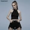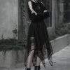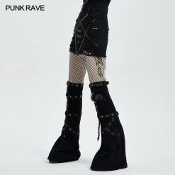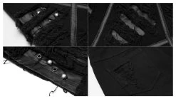 This beautiful goth/punk skirt is made of twill, denim woven fabric and matching PU leather woven fabric and a pentagram on the front and decorated with semi-elliptical rivets.