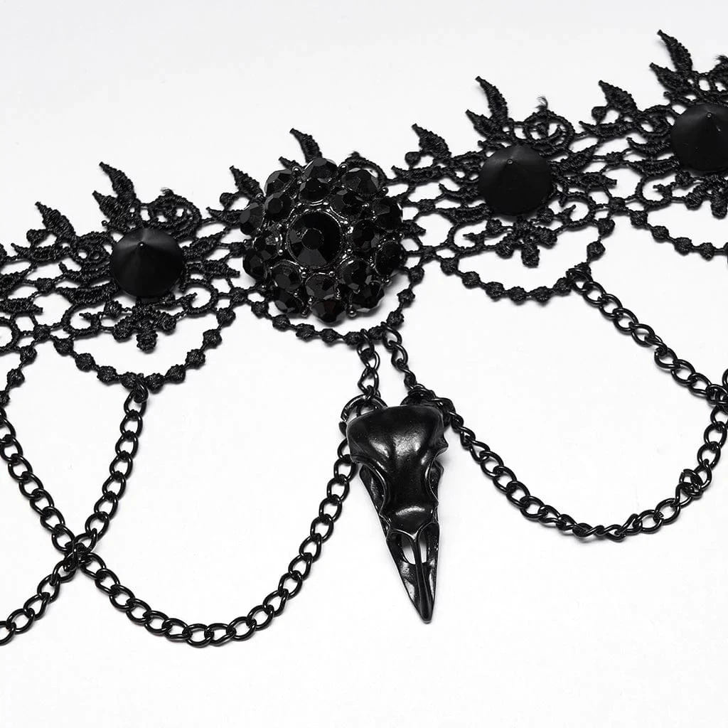 Take a daring plunge into the unknown and wear this Gothic Vintage Bird Skull Flower Choker. You’ll be sure to stand out with its raven skull, black flowers, and choker necklace design. Take a risk and make a statement with this one-of-a-kind piece.