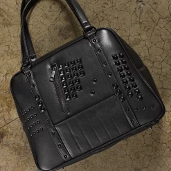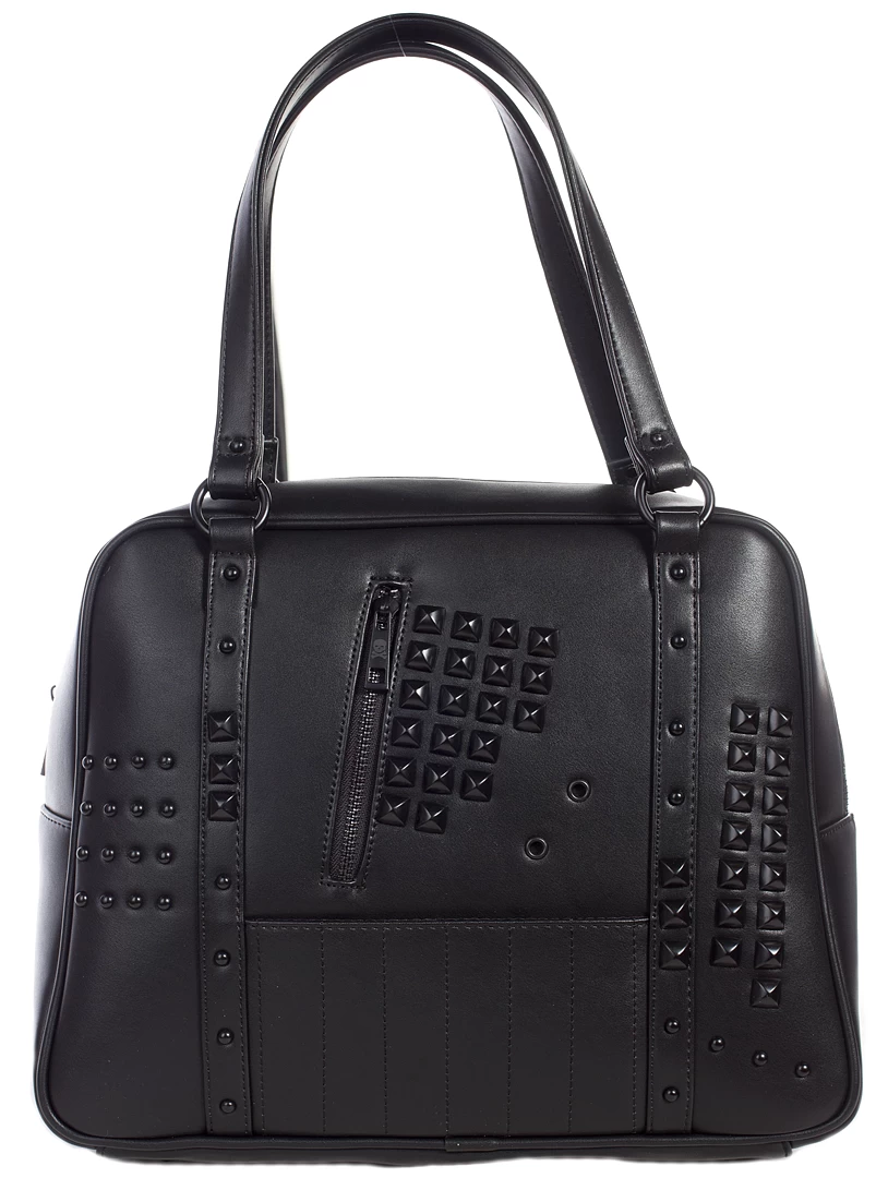 The Sourpuss Idoless Bowler Purse is anything but basic! We’ve taken one of our most popular purse designs and added it to our Idoless collection for a sleek & stylish addition to your wardrobe. This faux-leather bag features a zip closure, two top straps, interior zip pocket and ample space for anything you need – and more! Black stud detail on the front and back, as well as the small zippered pocket on the frontside, complete this classic look with a twist that’s perfect for any outing.
