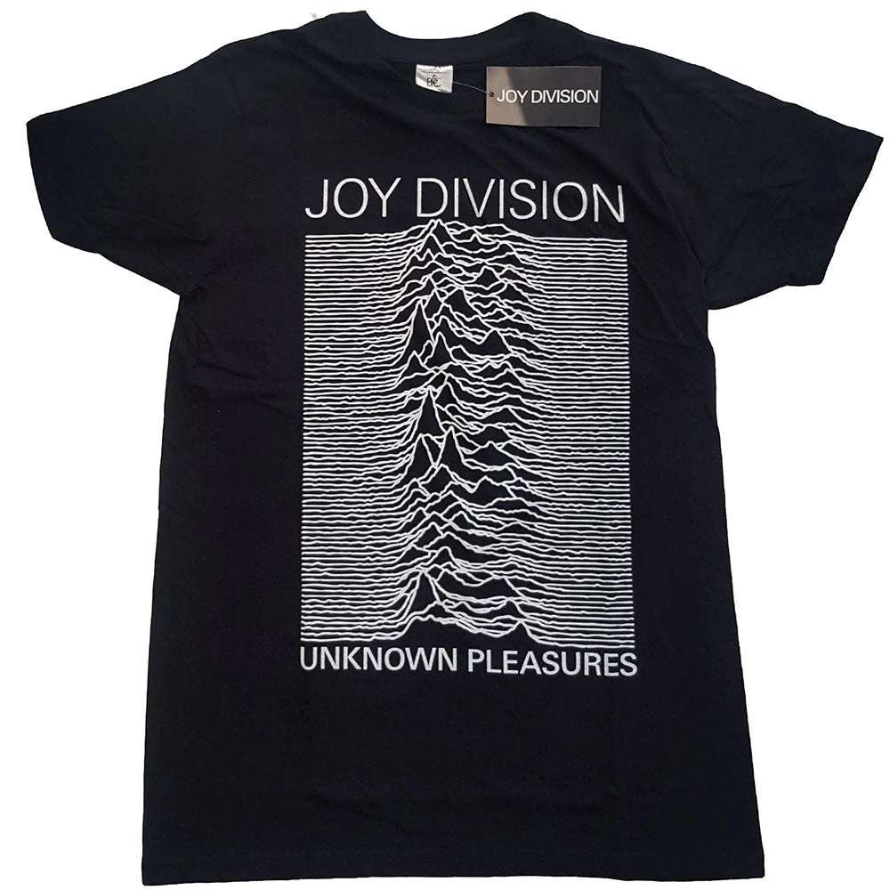 An official licensed Joy Division Unisex Tee featuring the ‘Unknown Pleasures White On Black’ design motif. This high quality t-shirt design is available in the black colourway.