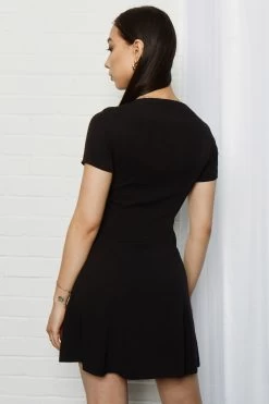 Made from a super soft viscose selected for it’s perfect drape; this sweet-meets-sour mini dress will serve you low-key grunge vibes with it’s soft sweetheart neckline and branded button-up front.