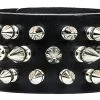 High quality leather bondage choker 1.25″ wide with three rings, and chain. Fastens with a buckle in the back, and adjusts by 6 inches at 1 inch increments.