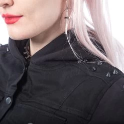Black hooded jacket with black spike studs and lace-up arms and sides. The arms and hood are a soft cotton sweatshirt material
