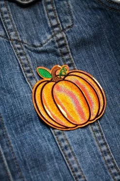 Orange Holographic Pumpkin Embroidered Iron on Patch