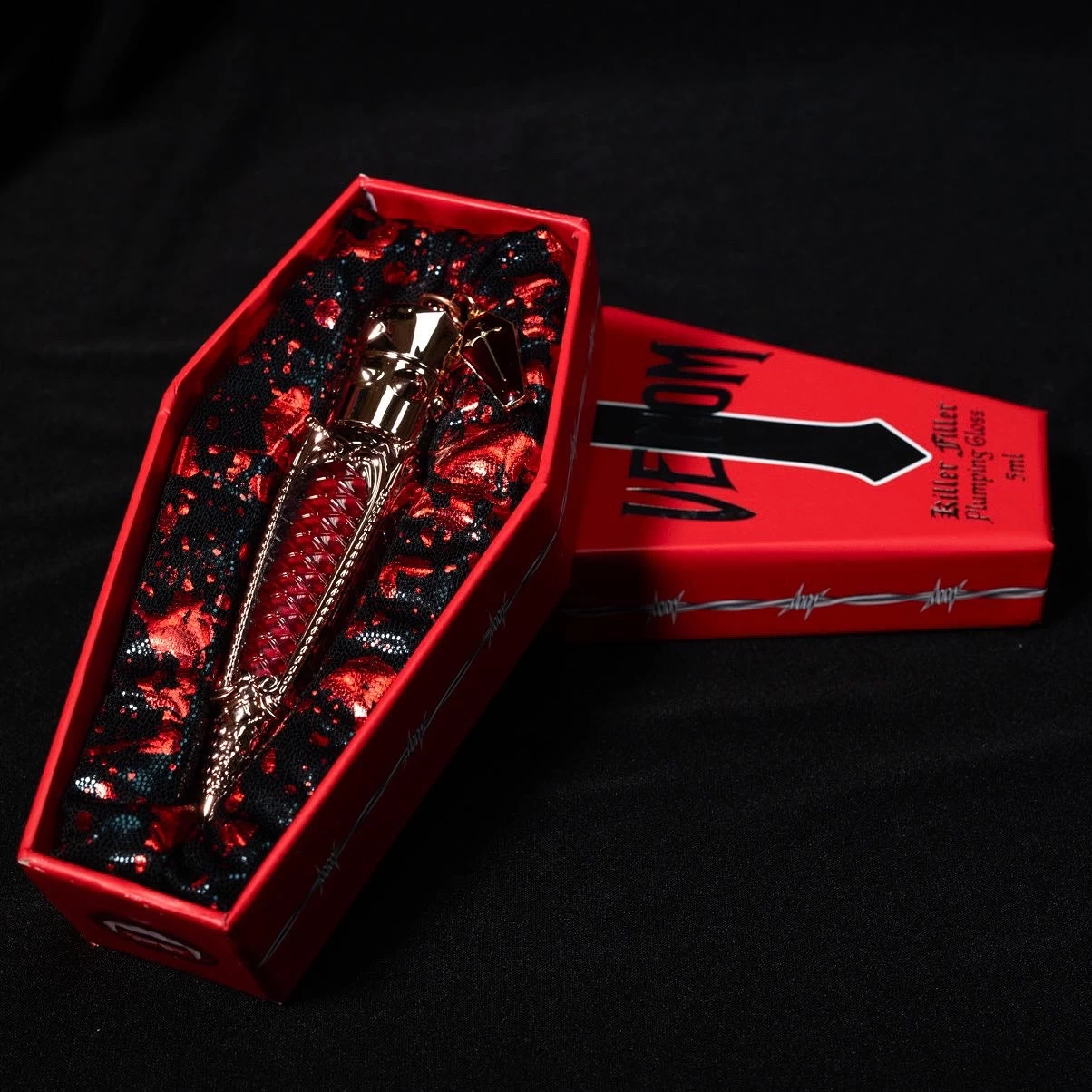 A natural red tinted gloss with rosey shimmer, medium plumping potency, Rose scented