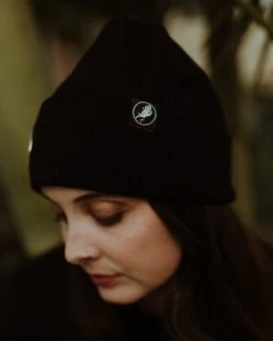 Small logo tag sewn into the side of each beanie, can be worn forwards or backwards.