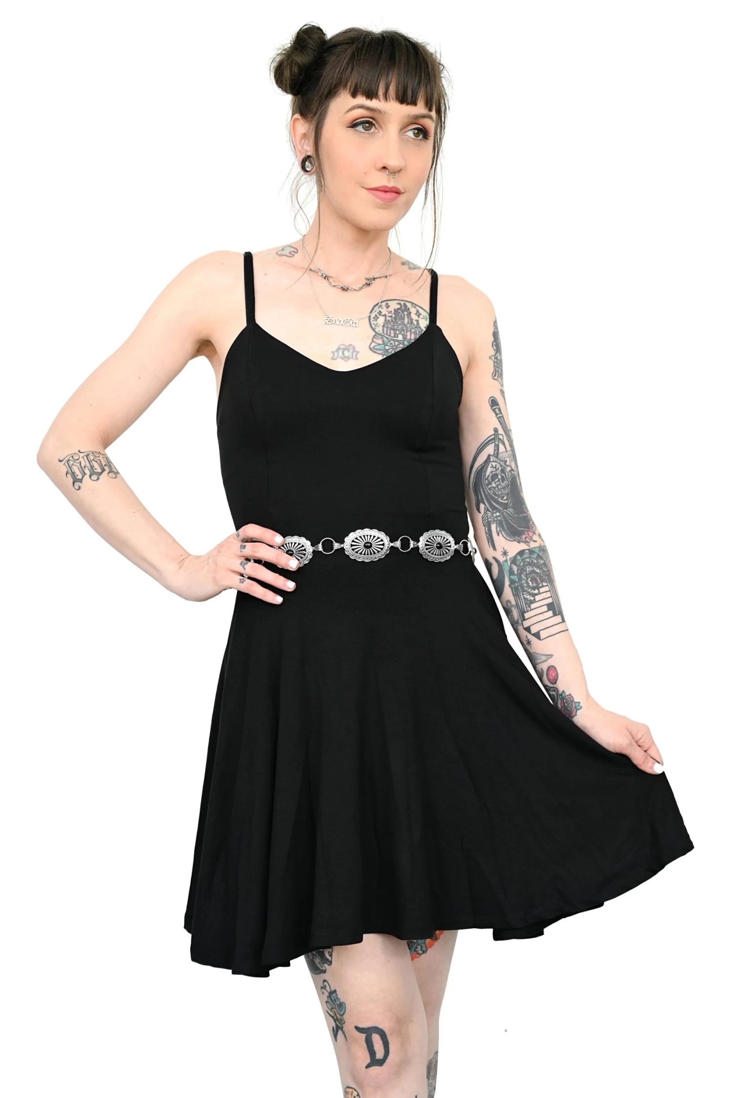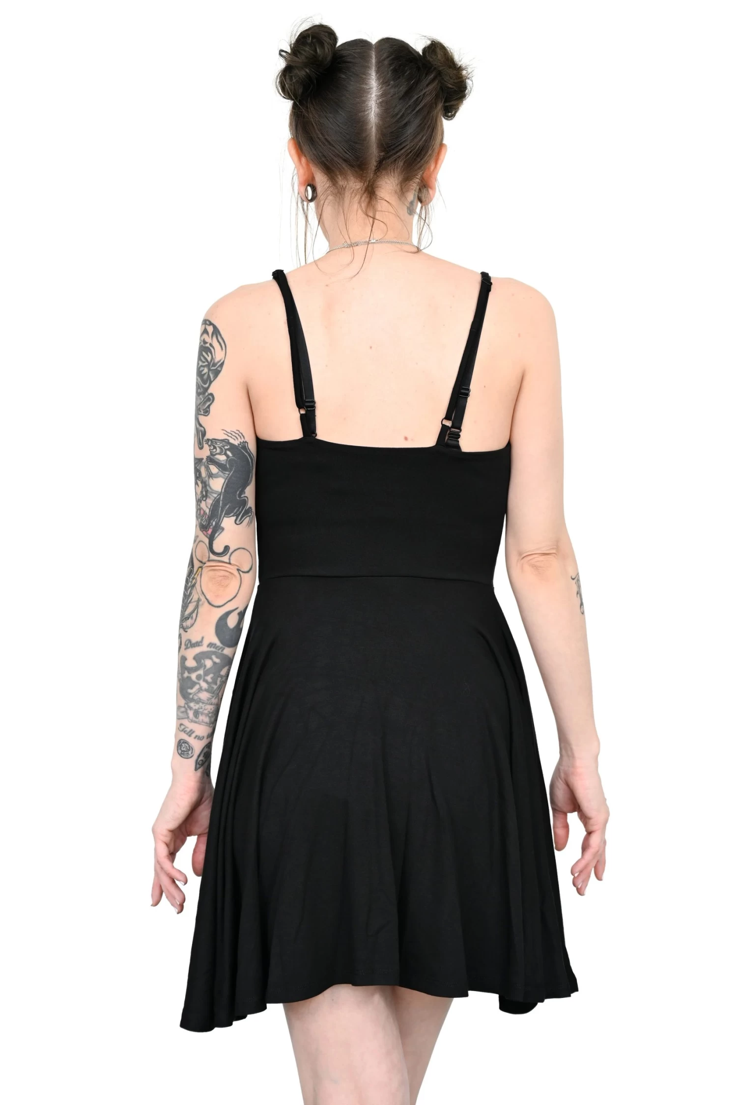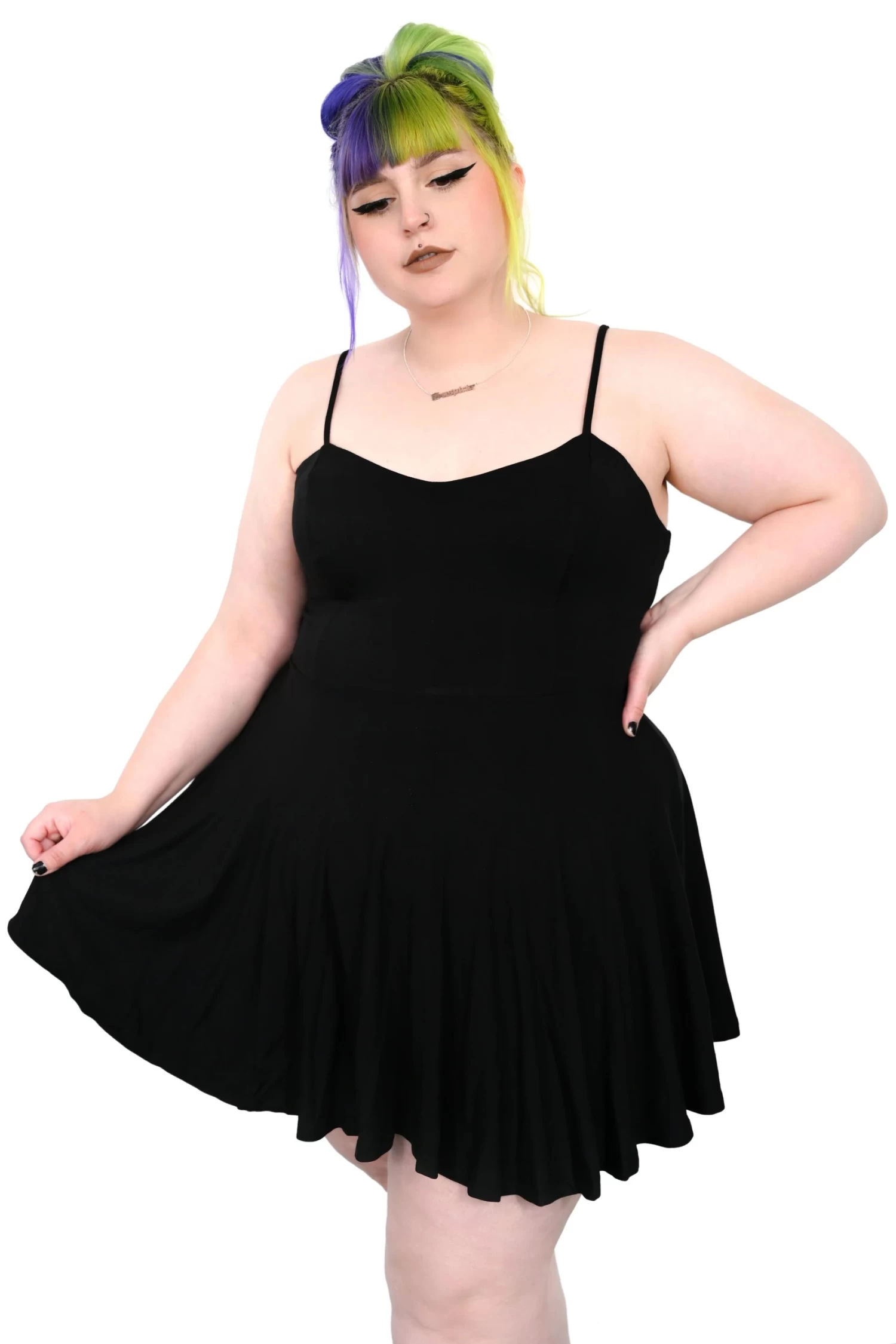 An easy all black cute swing dress to slip on.