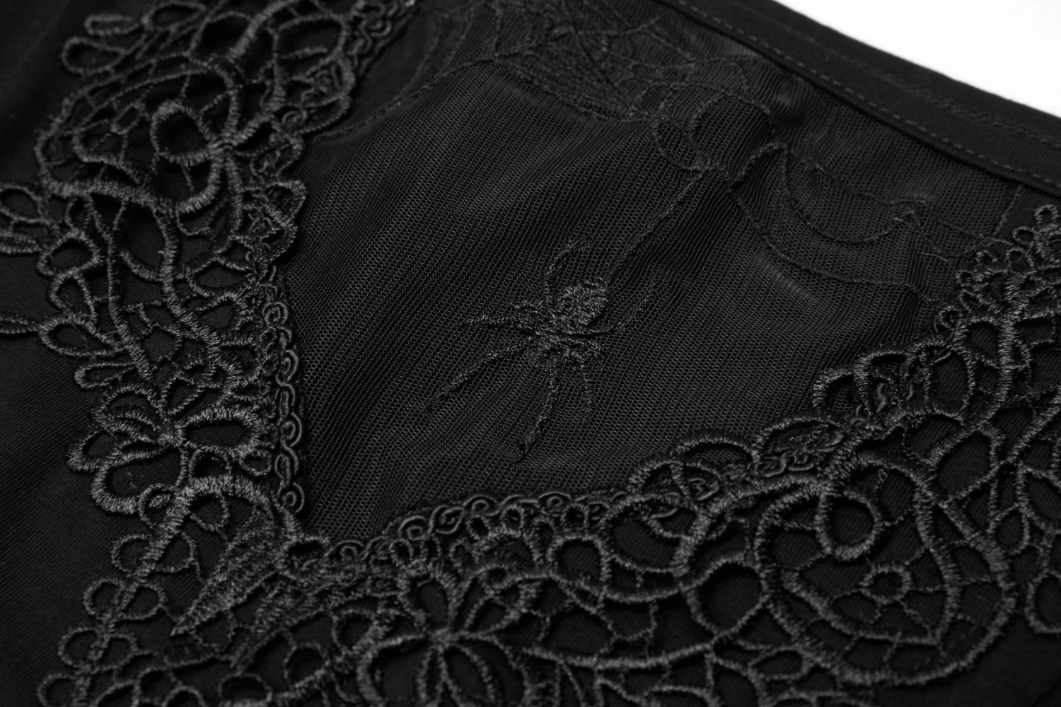 Lookin’ to spin a web of allure? Slip into this one-of-a-kind Spider Lace Top, with its Victorian-Goth chic mesh and spellbinding spider and cobweb accents. This tantalizing top features an off the shoulder design, tapered hem, cutout accent and breathtaking embroidery.