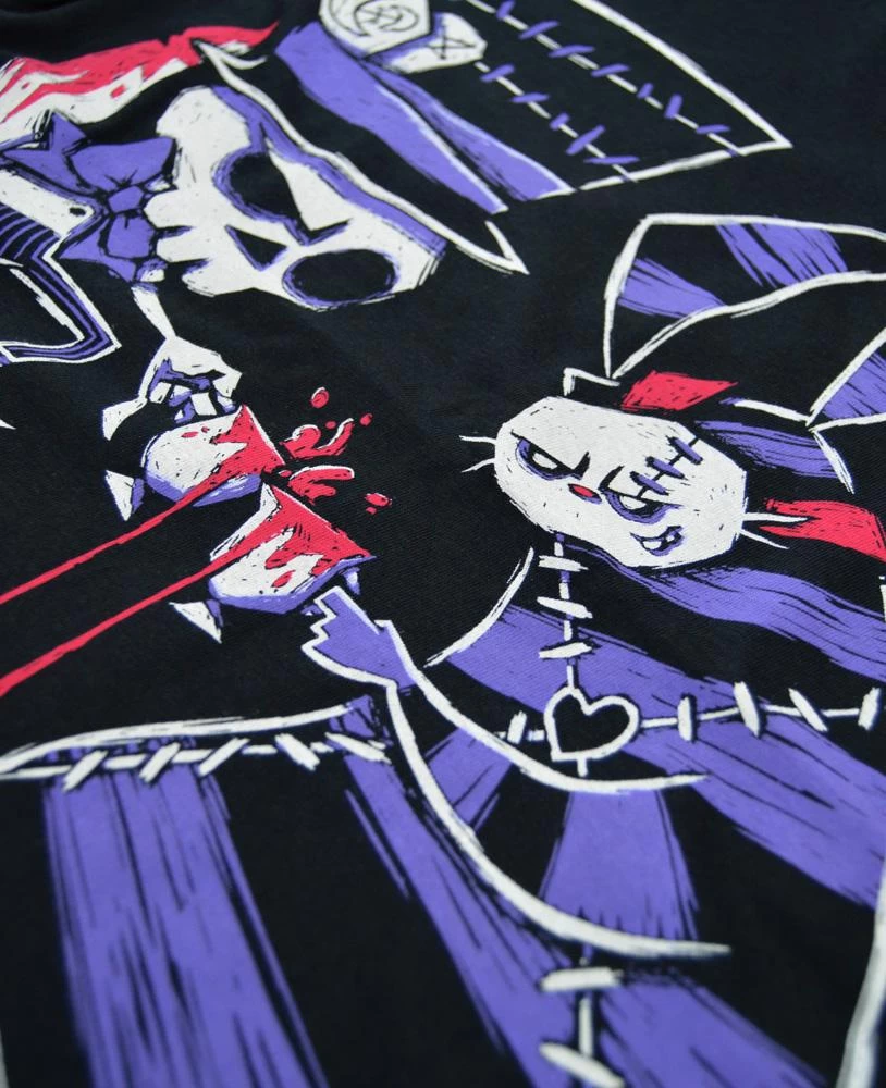Original hand-drawn artwork of the Mad Hatter and the Harvest Hare clinking their glasses right before they are about to set Wonderland on fire. Based off the artwork from Akumu Ink’s second self-published storybook Alice’s Nightmare in Wonderland.