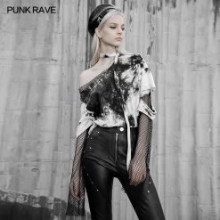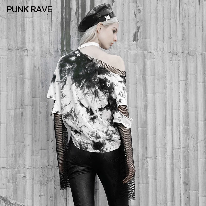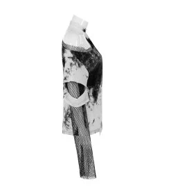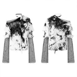 Boasting a unique combination of skater chic and punk attitude, this tee includes a choker neckline and a tie-dye print. Beneath the distressed sleeves lies a cotton and mesh layering.