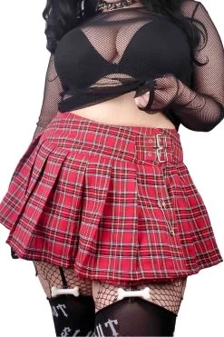 Lip Service Classic Plaid Pleated Mini Skirt has a DOUBLE BUCKLE waist detail and comes with a safety pin/kilt pin. Red plaid for that schoolgirl vibe!
