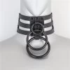 High quality 3-ring bondage wristband. The ring in the center is 1″ and the two on the side are .75″ Wristband is 1.25″ wide. 5/8″Buckle fastener with 3 adjustments at .5″ increments. Size shown is the middle hole of the three.
