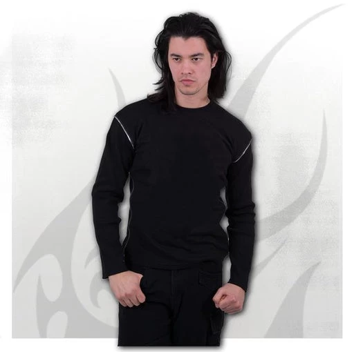Zip Side Ribbed Gothic Longsleeve is made of 100% Cotton with PU Leather Collar, Interlock using skin friendly, Azo-free, Reactive dyes.